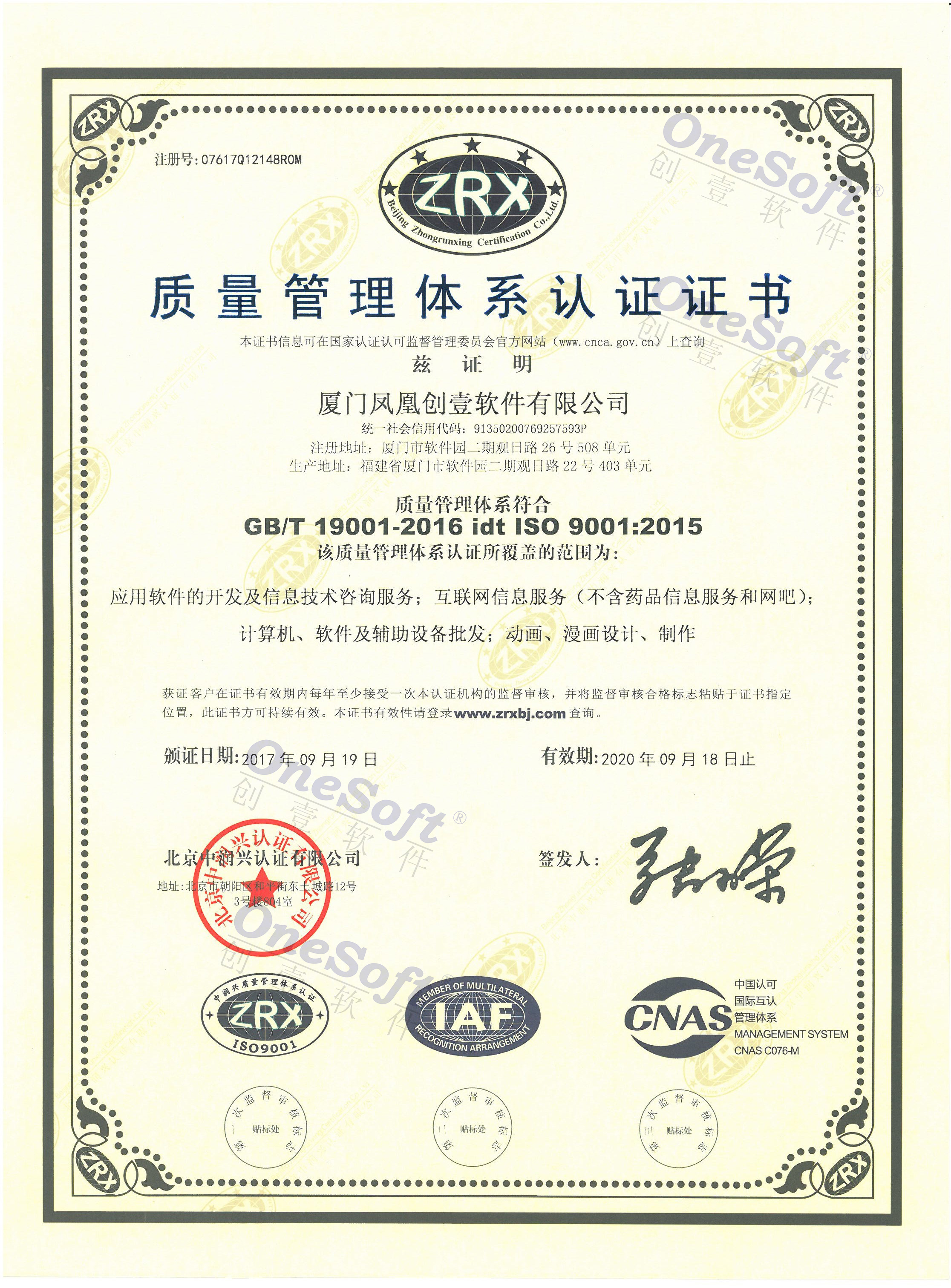 質(zhì)量管理體系認(rèn)證證書(shū)