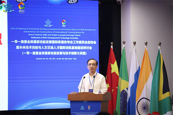 近日,一帶一路暨金磚國家技能發(fā)展國際聯(lián)盟各專業(yè)工作委員會(huì)啟動(dòng)會(huì)暨未來技術(shù)技能與人文交流人才國際訓(xùn)練基地建設(shè)研討會(huì)在廈門成功舉辦。教育部中外人文交流中心副主任夏娟,一帶一路暨金磚國家技能發(fā)展國際聯(lián)盟理事長、廈門市金磚未來技能發(fā)展與技術(shù)創(chuàng)新研究院院長劉振英出席會(huì)議并致辭。廈門市教育局副局長洪軍、廈門市人社局副局長彭新良、教育部中外人文交流中心機(jī)制工作二處處長陳滔偉、廈門市教育局高教職教處處長陳哲新、中國交通教育研究會(huì)副會(huì)長楊澤宇、教育部中外人文交流中心機(jī)制工作二處張馨心、廈門市金磚辦代表沈麗瓊、廈門火炬管委會(huì)代表蔡坤海、廈門市集美區(qū)人民政府代表于淑雅出席會(huì)議。來自全國82所院校、18家企業(yè)和社會(huì)團(tuán)體的200多名領(lǐng)導(dǎo)和專家現(xiàn)場參會(huì)。