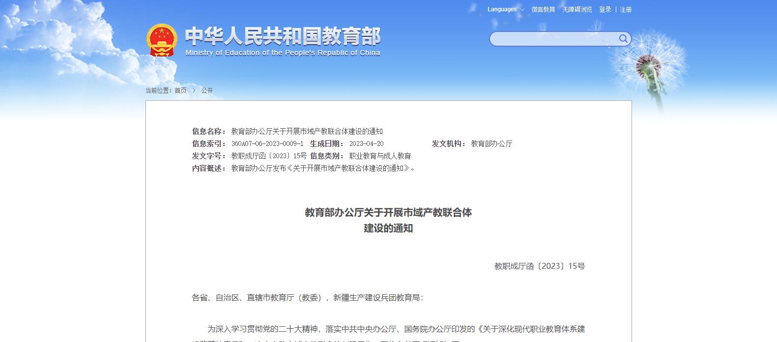 為深入學(xué)習(xí)貫徹黨的二十大精神,落實中共中央辦公廳、國務(wù)院辦公廳印發(fā)的《關(guān)于深化現(xiàn)代職業(yè)教育體系建設(shè)改革的意見》,決定啟動市域產(chǎn)教聯(lián)合體創(chuàng)建工作。現(xiàn)將有關(guān)事項通知如下。