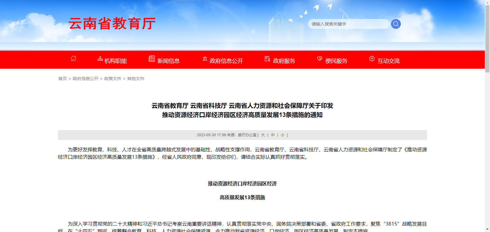 為更好發(fā)揮教育、科技、人才在全省高質量跨越式發(fā)展中的基礎性、戰(zhàn)略性支撐作用,云南省教育廳、云南省科技廳、云南省人力資源和社會保障廳制定了《推動資源經(jīng)濟口岸經(jīng)濟園區(qū)經(jīng)濟高質量發(fā)展13條措施》,經(jīng)省人民政府同意,現(xiàn)印發(fā)給你們,請結合實際認真抓好貫徹落實。