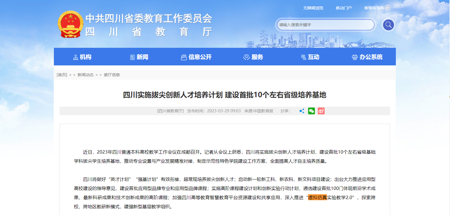 四川將做好“英才計劃”“強基計劃”有效銜接,超常規(guī)培養(yǎng)拔尖創(chuàng)新人才;啟動新一輪新工科、新農(nóng)科、新文科項目建設(shè);出臺大力推進(jìn)應(yīng)用型高校建設(shè)的指導(dǎo)意見,建設(shè)首批應(yīng)用型品牌專業(yè)和應(yīng)用型品牌課程;實施高階課程建設(shè)計劃和創(chuàng)新實驗行動計劃,遴選建設(shè)首批100門體現(xiàn)前沿學(xué)術(shù)成果、最新科研成果和技術(shù)創(chuàng)新成果的高階課程;加強四川高等教育智慧教育平臺資源建設(shè)和共享應(yīng)用,深入推進(jìn)“虛擬仿真實驗教學(xué)2.0”,探索跨校、跨地區(qū)教研新模式,建強新型基層教學(xué)組織。