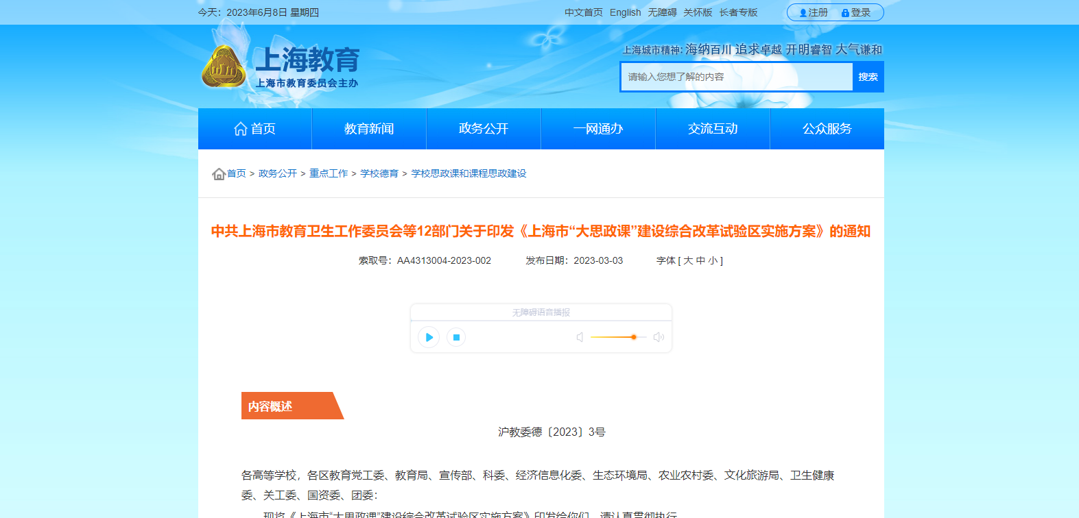 現(xiàn)將《上海市“大思政課”建設(shè)綜合改革試驗(yàn)區(qū)實(shí)施方案》印發(fā)給你們,請(qǐng)認(rèn)真貫徹執(zhí)行。