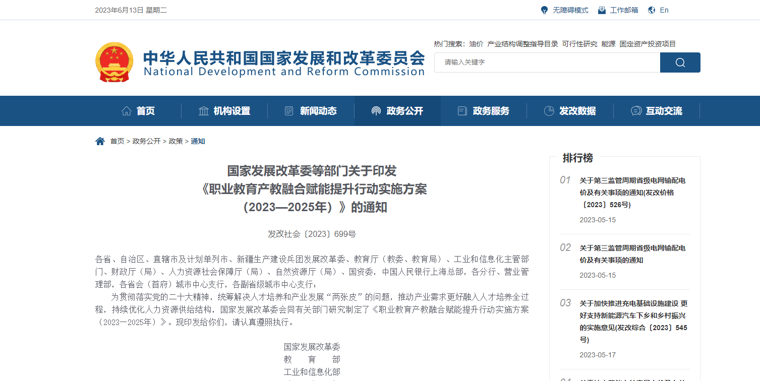近日,國家發(fā)展改革委、教育部等8部門聯(lián)合印發(fā)《職業(yè)教育產(chǎn)教融合賦能提升行動實施方案(2023—2025年)》。文件重點梳理了三類資金渠道,分別是中央預算內(nèi)投資、地方政府專項債券、中長期貸款。其中,安排中央預算內(nèi)投資支持符合條件的產(chǎn)教融合實訓基地建設,高職院校和應用型本科院校每所支持額度不超過8000萬元,中職院校每所支持額度不超過3000萬元。將職業(yè)教育產(chǎn)教融合項目納入地方政府專項債券支持范圍。將加大向金融機構推薦職業(yè)教育產(chǎn)教融合中長期貸款項目的力度,鼓勵金融機構按照“風險可控、商業(yè)可持續(xù)性”原則積極支持。