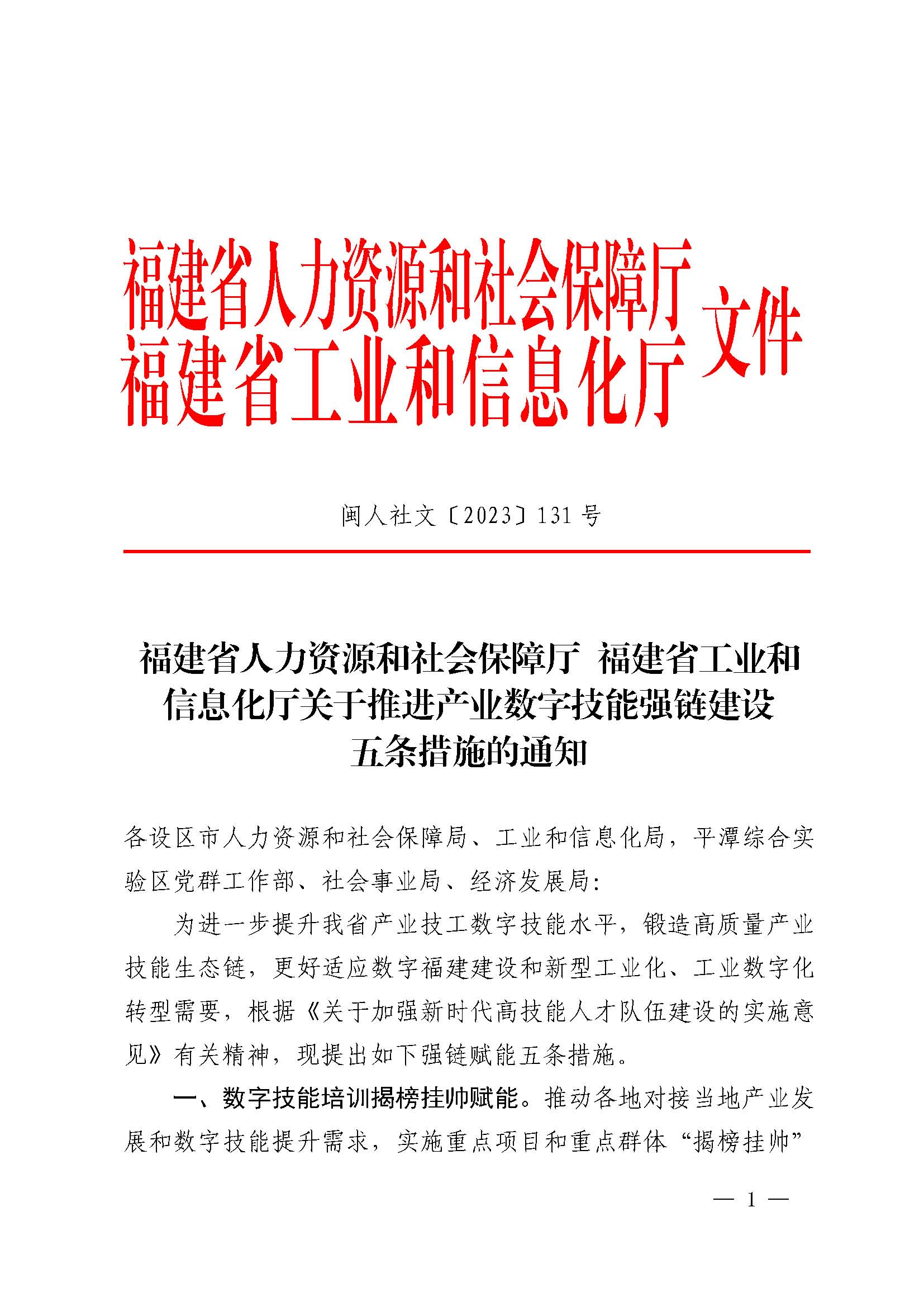福建省人力資源和社會保障廳 福建省工業(yè)和信息化廳發(fā)布關(guān)于推進(jìn)產(chǎn)業(yè)數(shù)字技能強(qiáng)鏈建設(shè)五條措施的通知