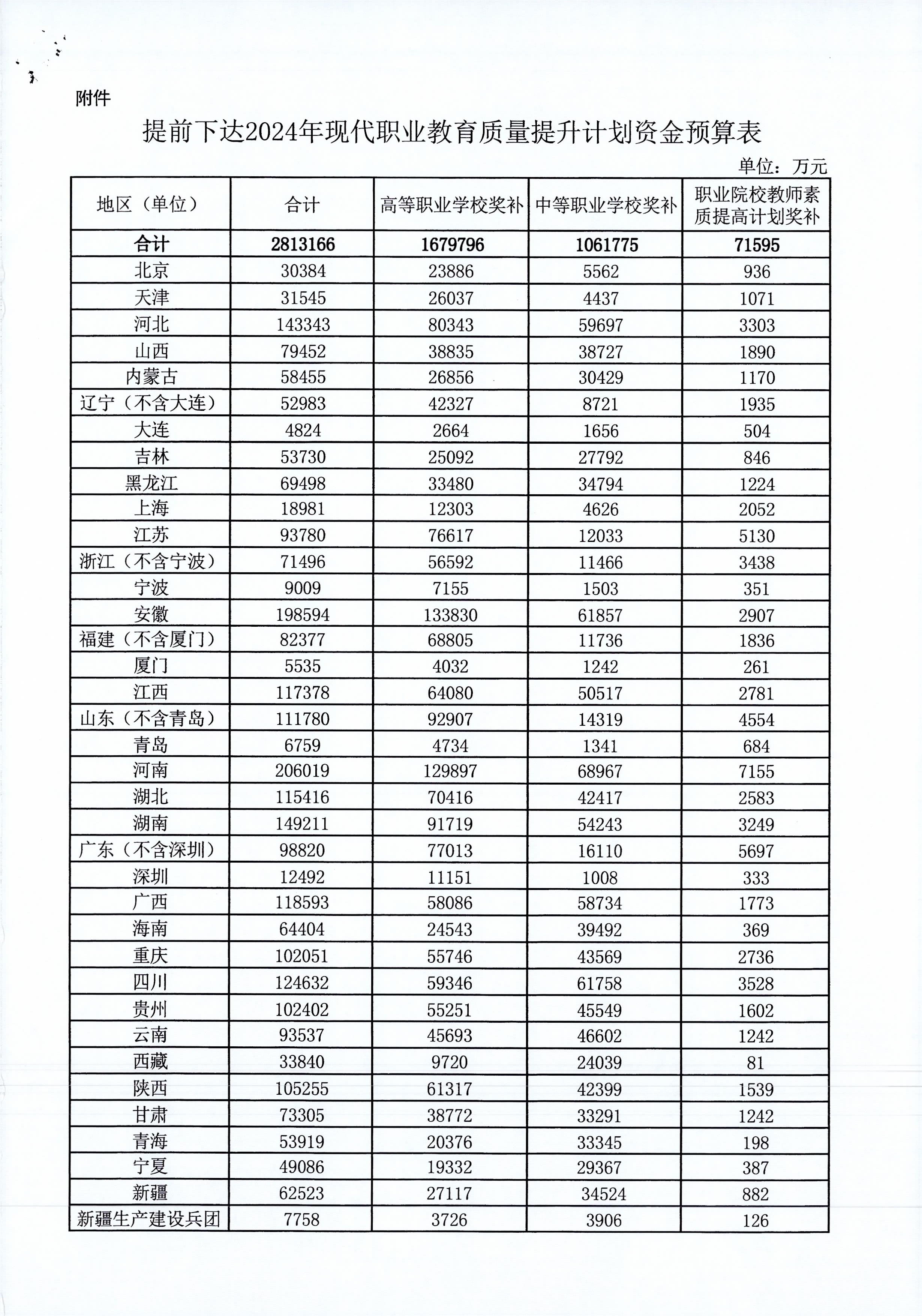 超281億!2024年職業(yè)教育質(zhì)量提升計劃資金預算公布!