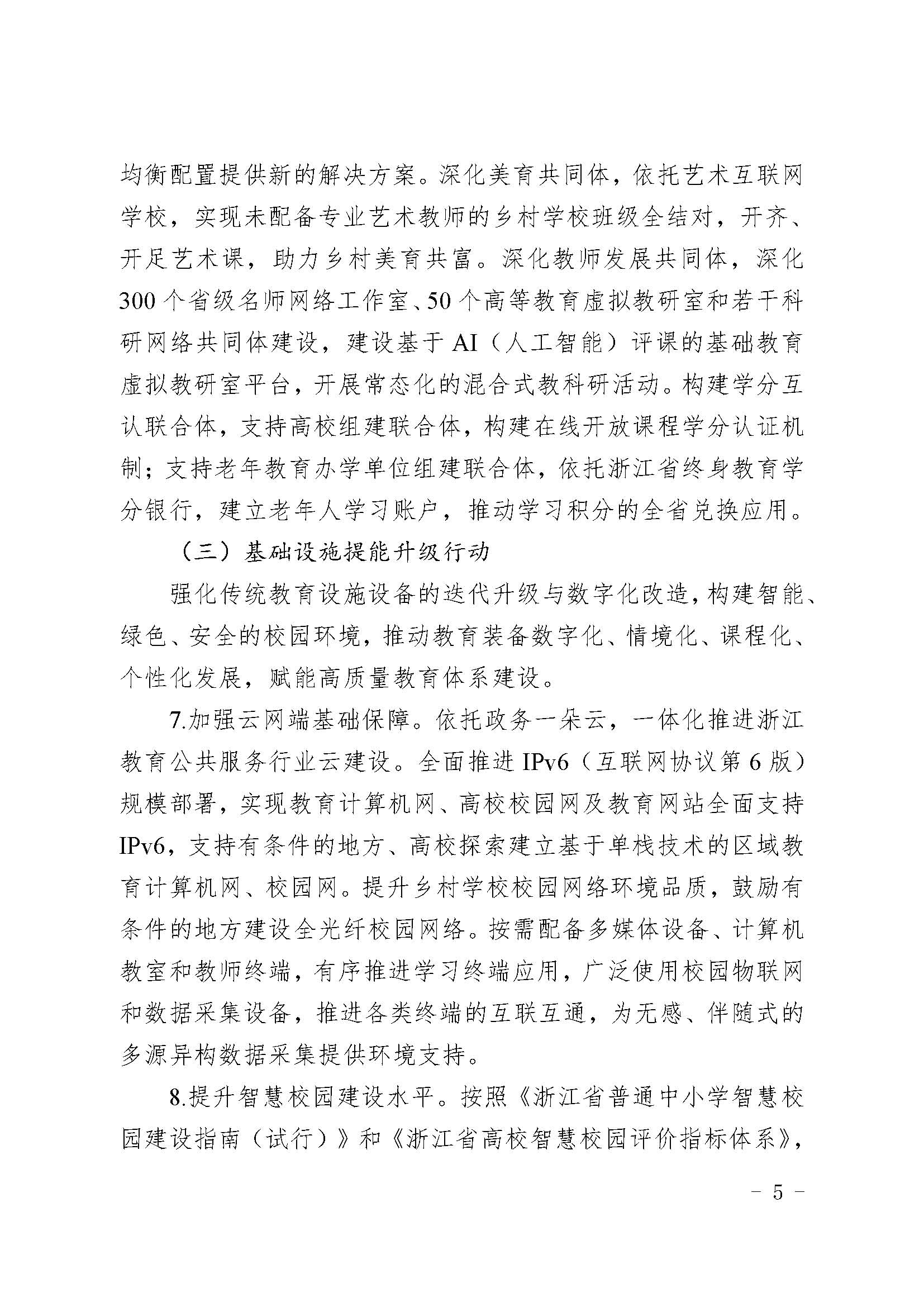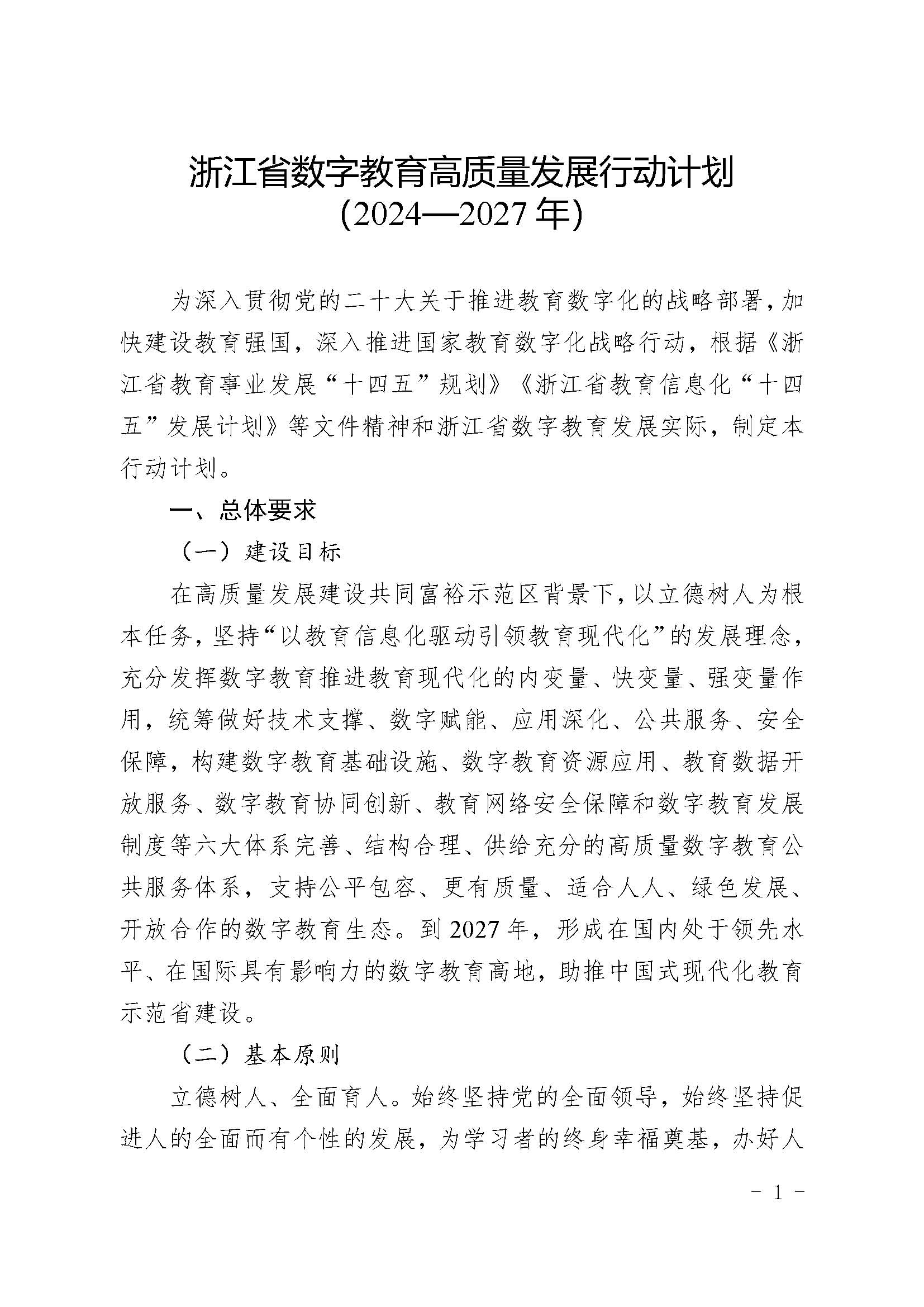 近日,浙江省教育廳官網(wǎng)發(fā)布關(guān)于印發(fā)《浙江省數(shù)字教育高質(zhì)量發(fā)展行動(dòng)計(jì)劃(2024-2027年)》的通知,在高質(zhì)量發(fā)展建設(shè)共同富裕示范區(qū)背景下,以立德樹人為根本任務(wù),堅(jiān)持“以教育信息化驅(qū)動(dòng)引領(lǐng)教育現(xiàn)代化”的發(fā)展理念,充分發(fā)揮數(shù)字教育推進(jìn)教育現(xiàn)代化的內(nèi)變量、快變量、強(qiáng)變量作用,統(tǒng)籌做好技術(shù)支撐、數(shù)字賦能、應(yīng)用深化、公共服務(wù)、安全保障,構(gòu)建數(shù)字教育基礎(chǔ)設(shè)施、數(shù)字教育資源應(yīng)用、教育數(shù)據(jù)開放服務(wù)、數(shù)字教育協(xié)同創(chuàng)新、教育網(wǎng)絡(luò)安全保障和數(shù)字教育發(fā)展制度等六大體系完善、結(jié)構(gòu)合理、供給充分的高質(zhì)量數(shù)字教育公共服務(wù)體系,支持公平包容、更有質(zhì)量、適合人人、綠色發(fā)展、開放合作的數(shù)字教育生態(tài)。到2027年,形成在國(guó)內(nèi)處于領(lǐng)先水平、在國(guó)際具有影響力的數(shù)字教育高地,助推中國(guó)式現(xiàn)代化教育示范省建設(shè)。