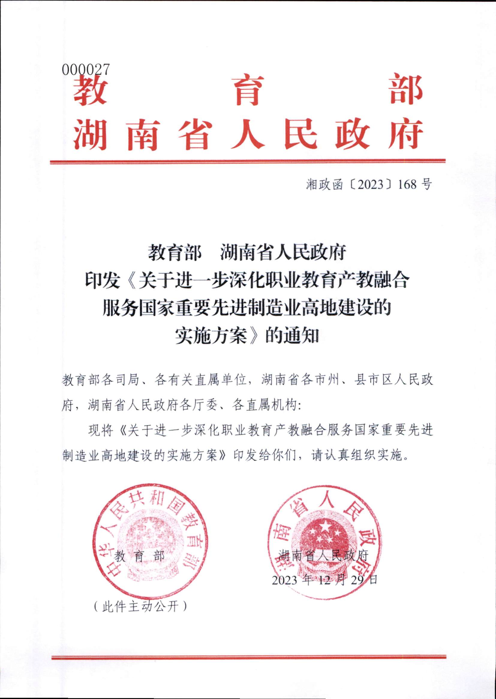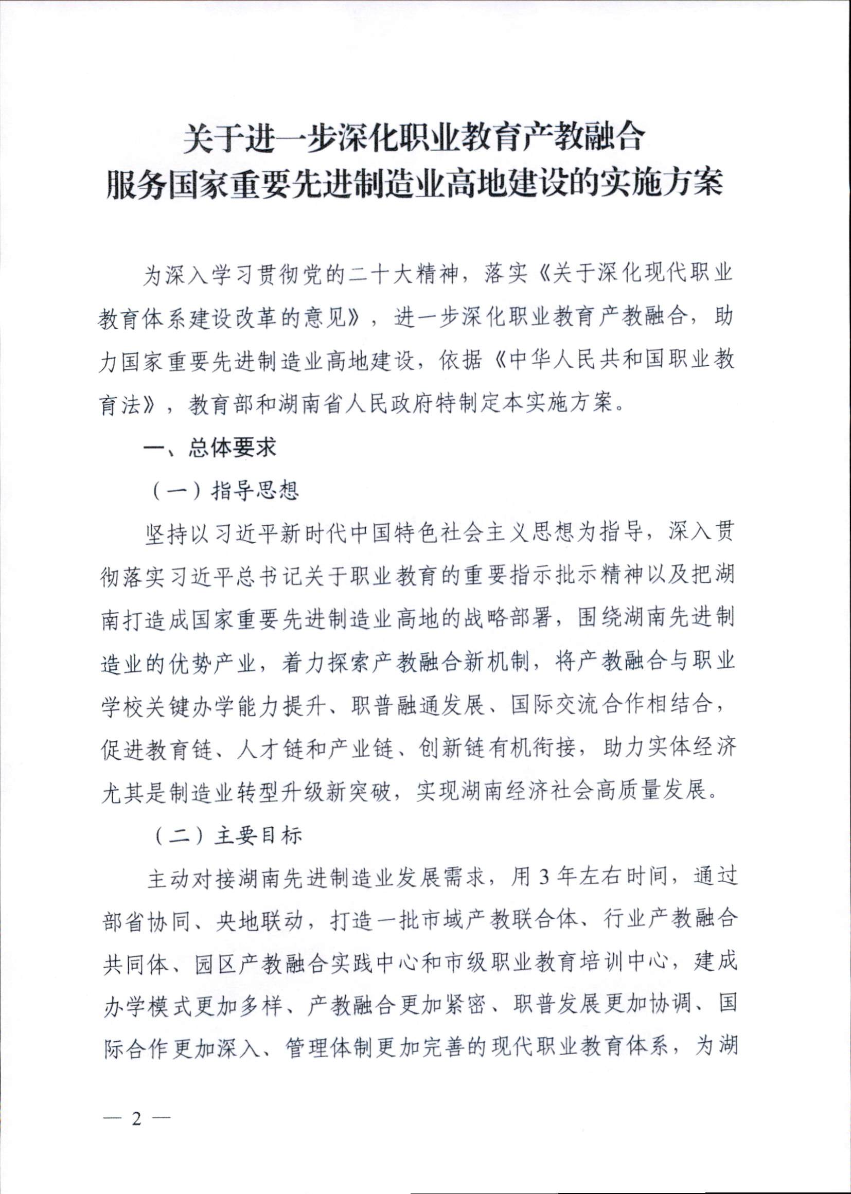重磅!教育部 湖南省人民政府《關(guān)于進(jìn)一步深化職業(yè)教育產(chǎn)教融合服務(wù)國家重要先進(jìn)制造業(yè)高地建設(shè)的實(shí)施方案》發(fā)布