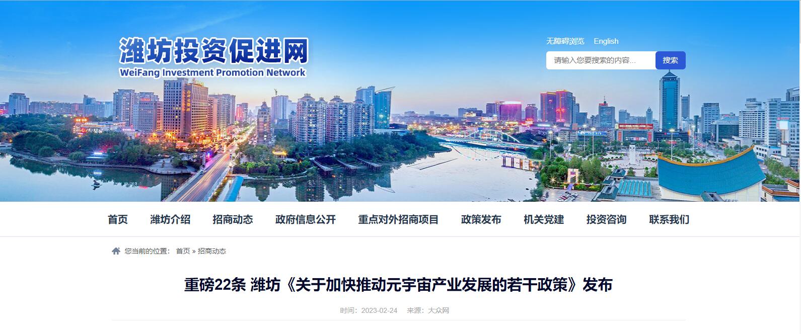 重磅22條 濰坊《關于加快推動元宇宙產(chǎn)業(yè)發(fā)展的若干政策》發(fā)布