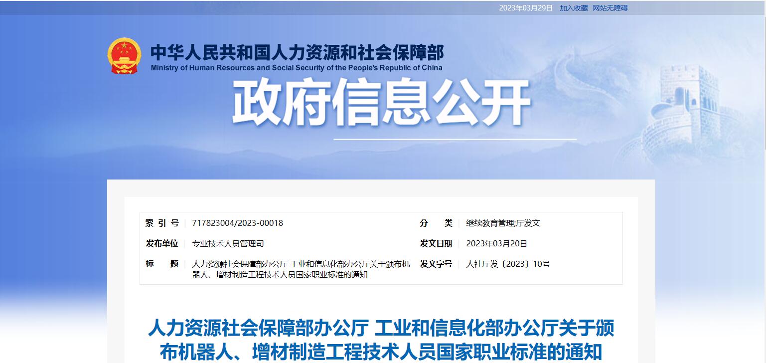 機器人、增材制造工程技術(shù)人員等4個國家職業(yè)標準頒布