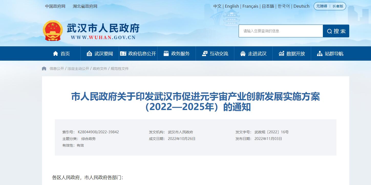 武漢發(fā)布促進(jìn)元宇宙產(chǎn)業(yè)創(chuàng)新發(fā)展實施方案(2022-2025)