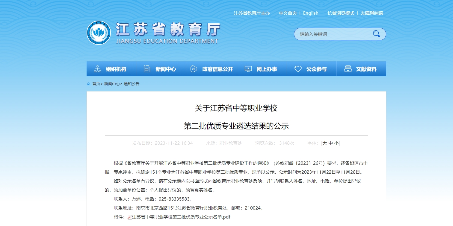 江蘇省教育廳公示江蘇省中等職業(yè)學(xué)校第二批優(yōu)質(zhì)專業(yè)遴選結(jié)果