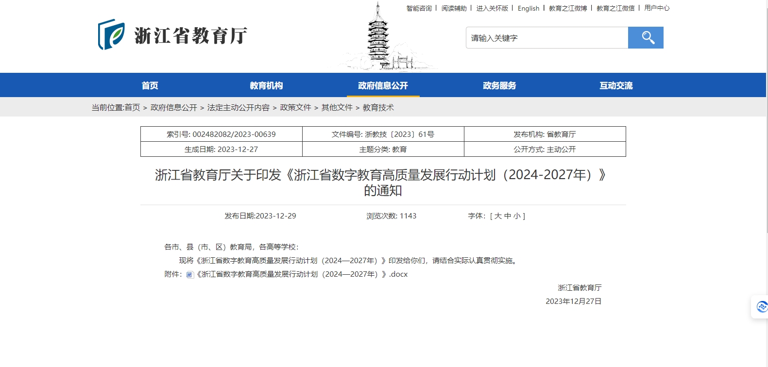 浙江省教育廳關(guān)于印發(fā)《浙江省數(shù)字教育高質(zhì)量發(fā)展行動計劃(2024-2027年)》的通知